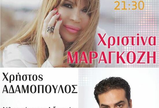Την Παρασκευή 17 Αυγούστου 2018 στις 21:30 Συναυλία με την Χριστίνα Μαραγκόζη και τον Χρήστο Αδαμόπουλο.