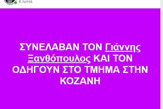 Ο κ. Ξανθόπουλος βρισκόταν σήμερα στην παράσταση διαμαρτυρίας μερίδας συμπολιτών μας, έξω από τη Σχολή Πυροσβεστικής Πτολεμαΐδας, μια διαμαρτυρία που στιγματίστηκε από επεισόδια μεταξύ διαδηλωτών – αστυνομίας. Την είδηση της σύλληψης γνωστοποίησε η δικηγόρος Αριάδνη Νούκα.
