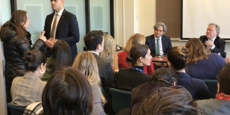 Ενταση επικράτησε κατά τη διάρκεια της ομιλίας του υπουργού Εξωτερικών, Γιώργου Κατρούγκαλου, στην αίθουσα του Πανεπιστημίου Κολούμπια (Columbia University), στη Νέα Υόρκη, σχετικά με τη Συμφωνία των Πρεσπών, όταν ομογενείς απηύθυναν ερωτήσεις σε έντονο ύφος διαφωνίας και τελικά αποχώρησαν διαμαρτυρόμενοι από την αίθουσα.