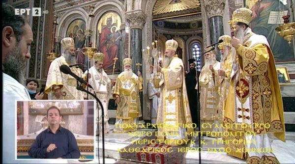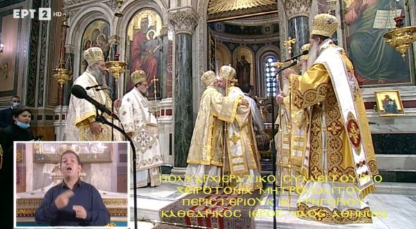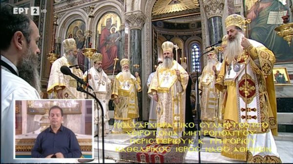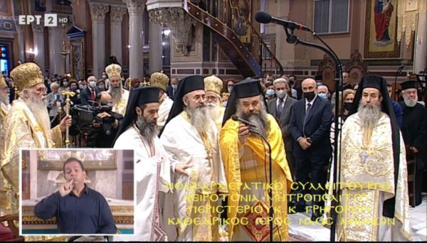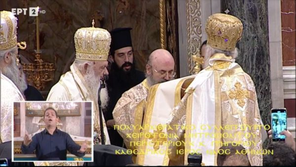 Προεξάρχοντος του Αρχιεπισκόπου Αθηνών και πάσης Ελλάδος κ.κ. Ιερωνύμου, τελέστηκε σήμερα, Κυριακή 17 Οκτωβρίου, στον Ιερό Μητροπολιτικό Ναό Αθηνών, η χειροτονία του Εψηφισμένου Μητροπολίτου Περιστερίου κ. Γρηγορίου, που εξελέγη από την Ιερά Σύνοδο της Ιεραρχίας της Εκκλησίας της Ελλάδος στις 8 Οκτωβρίου 2021, λαμβάνοντας 64 ψήφους. Τον Αρχιεπίσκοπο πλαισίωσαν οι Σεβασμιώτατοι Μητροπολίτες: Δημητριάδος και Αλμυρού κ. Ιγνάτιος, Μεσογαίας και Λαυρεωτικής κ. Νικόλαος, Μεσσηνίας κ. Χρυσόστομος, Ιλίου, Αχαρνών και Πετρουπόλεως κ. Αθηναγόρας, Κίτρους, Κατερίνης και Πλαταμώνος κ. Γεώργιος, Φθιώτιδος κ. Συμεών. Παρίστατο ακόμα ο Σεβασμιώτατος Μητροπολίτης Δωδώνης κ. Χρυσόστομος.