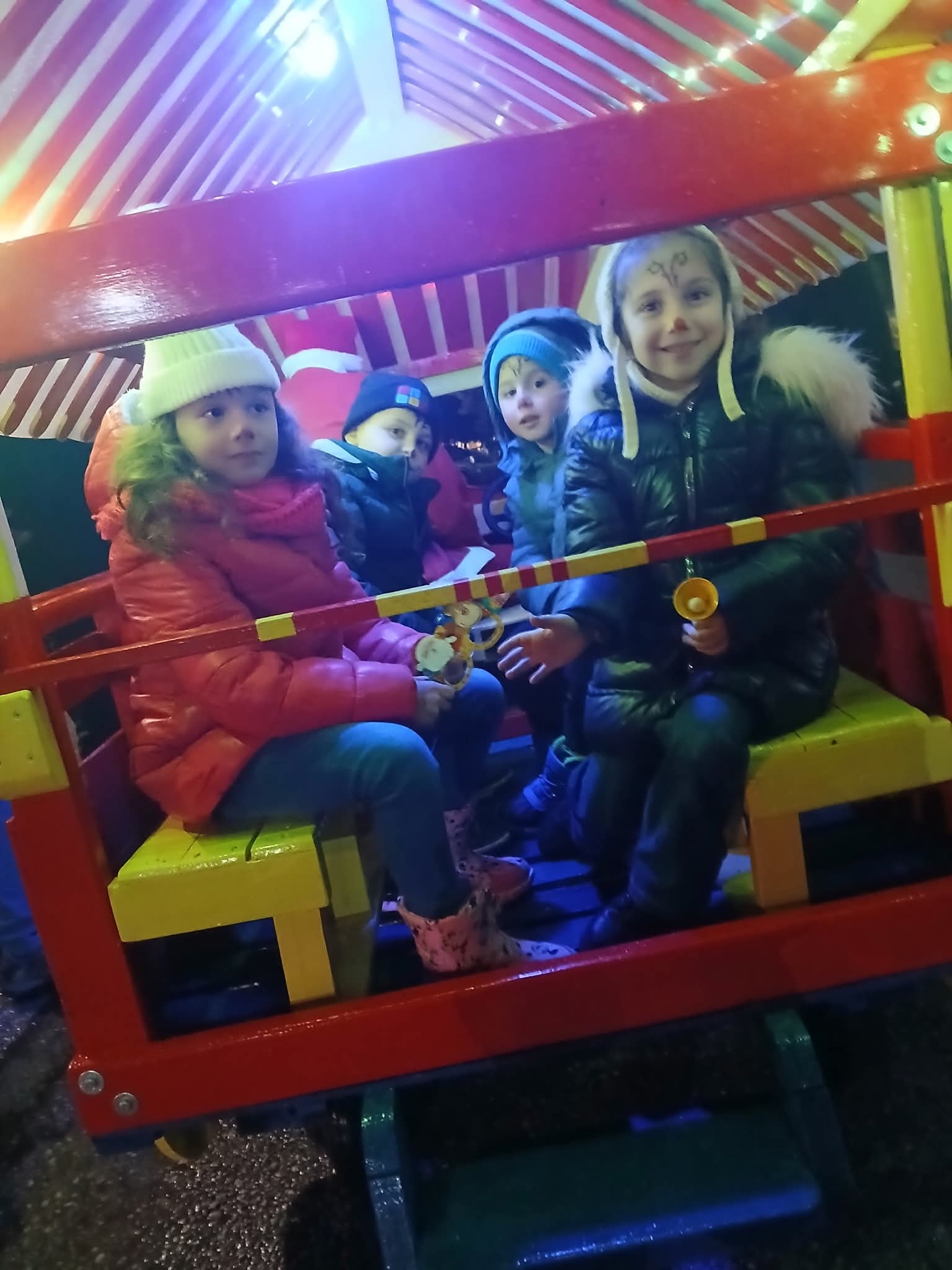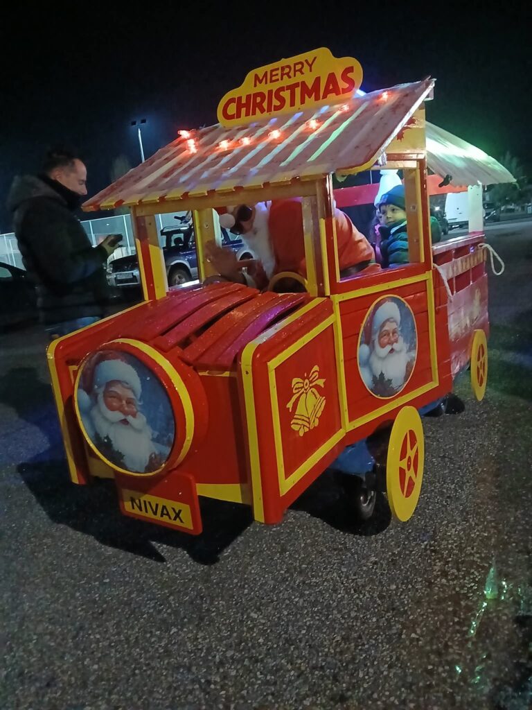 Βόλτα με το τρενάκι του Αϊ-Βασίλη κάνουν τα μικρά παιδιά στο Χριστουγεννιάτικο πάρκο της Γαλατινής.