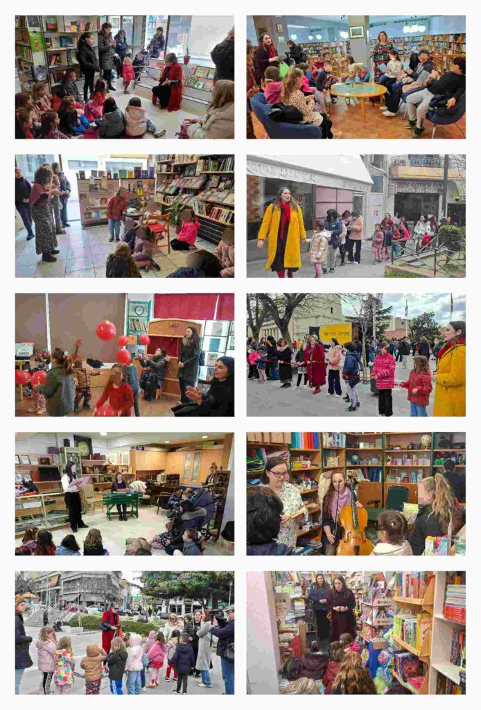 Με σημείο συνάντησης την κεντρική πλατεία, τα παιδιά έκαναν έναν πρωινό περίπατο σε βιβλιοπωλεία. Η πόλη μετατράπηκε σε έναν χάρτη ποίησης, αφήγησης και μουσικής. Σε κάθε στάση, αφηγητές και μουσικοί ζωντάνεψαν ποιήματα και ιστορίες για παιδιά, σε μια διαδρομή γεμάτη λόγο, ήχο και φαντασία. Οι μικροί φίλοι επισκέφθηκαν τα βιβλιοπωλεία: Πάπυρος, Συνεταιριστικό, Αθανασιάδης, Στοά του Βιβλίου, Σακαλής, Καταφυγή Βιβλιοφίλων, Μαγαζάκι στη Γωνία. Συμμετείχαν οι: Θεανώ Κουτσιμανή, Δέσποινα Παρδάλη, Λίλη Στραβοπόδη, Δώρα Τανή, Αναστασία Τοπάλη, Αναστασία Τσούνη, Νίκη Φωτιάδου.