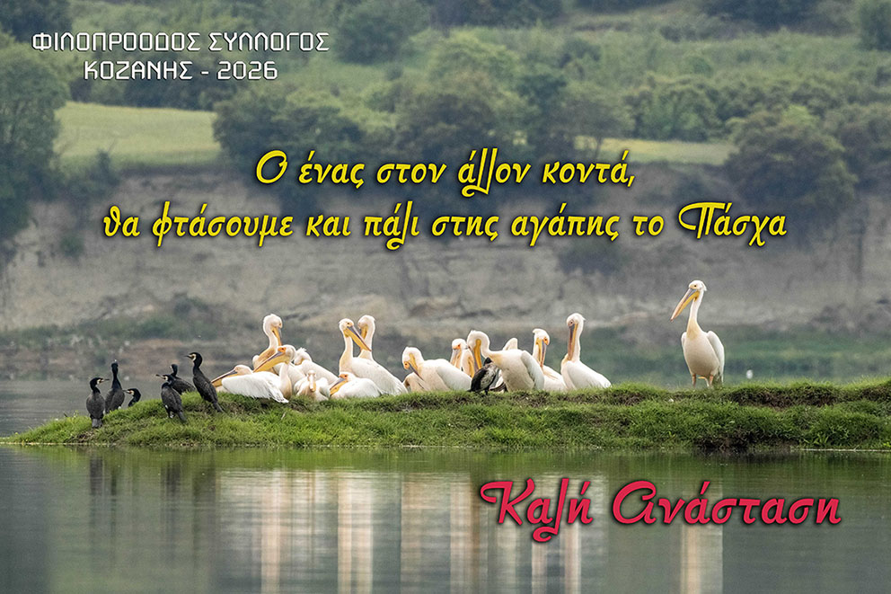 Ακολουθεί η καθιερωμένη πασχαλινή μας κάρτα, που έχει ήδη μοιραστεί στους συντελεστές της δράσης, με θέμα τα συγκεντρωμένα πουλιά που φιλοξενεί η λίμνη του Πολυφύτου, μέσα από φωτογραφία που ευγενικά μας παραχώρησε ο βραβευμένος στην τέχνη της φωτογραφίας, συντοπίτης μας Δημήτρης Βαβλιάρας, τον οποίο και θερμά ευχαριστούμε.