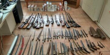 Μεταξύ άλλων κατασχέθηκαν -26- όπλα διαφόρων τύπων, -26- ξιφολόγχες, -19- σπαθιά, -1.034- αδασμολόγητα πακέτα τσιγάρων και -800- γραμμάρια αδασμολόγητου καπνού