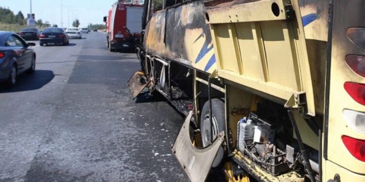 Στις φλόγες τυλίχθηκε εκδρομικό λεωφορείο στηνπεριοχή Παλιοβούνα στη Ναύπακτο. Το εκδρομικό, ήταν ένα διώροφο λεωφορείο με παιδιά από σχολείο της Πάτρας και κατευθυνόταν προς ταΙωάννινα.
