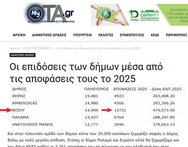 Το δημοσίευμα του my ota.gr που αναφέρεται στις επιδόσεις των Δήμων σε σχέση με τον αριθμό των αποφάσεων που έχουν ληφθεί εντός του 2025, έρχεται σαν μια μικρή αναγνώριση των προσπαθειών που καταβάλαμε ώστε να οδηγήσουμε τον Δήμο μας ακόμη πιο ψηλά.