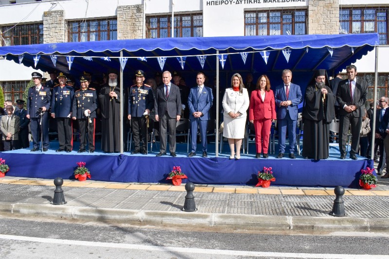 Ο Δήμαρχος Καστοριάς, Γιάννης Κορεντσίδης, υποδέχθηκε στις φετινές επετειακές εκδηλώσεις τον εκπρόσωπο της Κυβέρνησης, Υφυπουργό Εθνικής Άμυνας, Αθανάσιο Δαβάκη, τον Αρχηγό του Γ.Ε.Σ., Αντιστράτηγο Γεώργιο Κωστίδη, τη Βουλευτή Καστοριάς, Μαρία Αντωνίου, τη Βουλευτή Κοζάνης, Καλλιόπη Βέττα, τον Περιφερειάρχη Δυτικής Μακεδονίας, Γιώργο Αμανατίδη, τον Αντιπεριφερειάρχη Καστοριάς, Δημήτριο Σαββόπουλο, τον Διοικητή ΑΣΔΜ, Αντιστράτηγο Αθανάσιο Γαρίνη, τον Διοικητή της 9ης Μ/Π Ταξιαρχίας, Αναστάσιο Βασιλείου, τον Διοικητή του 15ου Συντάγματος, Συνταγματάρχη Θωμά Γεωργιάδη, τον Συντονιστή Επιχειρήσεων Πυροσβεστικού Σώματος Ηπείρου, Δυτικής Μακεδονίας και Νήσων, Υποστράτηγο Χριστόφορο Μπόκα, τον Διοικητή της Περιφερειακής Διοίκησης Πυροσβεστικών Υπηρεσιών Δυτικής Μακεδονίας, Αρχιπύραρχο Ιωάννη Αμανατίδη, τον Γενικό Περιφερειακό Αστυνομικό Διευθυντή Δυτικής Μακεδονίας, Ταξίαρχο Κωνσταντίνο Σπανούδη, τον Αστυνομικό Διευθυντή Καστοριάς Νικόλαο Έξαρχο, τον Διοικητή της Πυροσβεστικής Υπηρεσίας Καστοριάς, Πύραρχο Δημήτρη Παπουτσίδη, καθώς και τον Διοικητή της 3ης ΜΣΕΠ Βιτσίου, Επισμηναγό (ΤΕΑ) Κωνσταντίνο Κατσώρα.