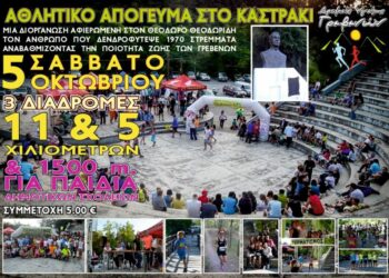 Προκήρυξη Οι Δρομείς Υγείας Γρεβενών, διοργανώνουν την ετήσια δρομική, περιπατητική και φυσιολατρική συνάντηση «ΑΘΛΗΤΙΚΟ ΑΠΟΓΕΥΜΑ ΣΤΟ ΚΑΣΤΡΑΚΙ», το Σάββατο 5 ...