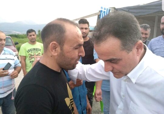 Μετά από συνάντηση που είχε πραγματοποιηθεί στο γραφείο του με εκπροσώπους των Ρομά, ο Περιφερειάρχης βρέθηκε στον καταυλισμό τους το απόγευμα της Τετάρτης 1 Αυγούστου, όπου παρουσία του Εντεταλμένου Περιφερειακού Συμβούλου κ. Σταύρου Γιαννακίδη και του Αντιδημάρχου Τεχνικών Υπηρεσιών Εορδαίας κ. Φώτη Ιορδανίδη συζήτησαν το θέμα της μετεγκατάστασης του καταυλισμού στο χώρο όπου έχει υποδείξει το Δημοτικό Συμβούλιο, τονίζοντας την αναγκαιότητα δημιουργίας ενός οικισμού που θα παρέχει ανθρώπινες και αξιοπρεπείς συνθήκες διαβίωσης, βελτίωση της ποιότητας ζωής και θα συμβάλλει στην ομαλή ένταξή τους στον κοινωνικό ιστό.