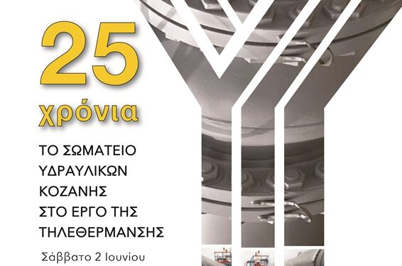 Το Σωματείο Υδραυλικών Κοζάνης «ο Ήλιος» και το Επιμελητήριο Κοζάνης συνδιοργανώνουν το Σάββατο 2 Ιουνίου εκδήλωση με θέμα: «25 χρόνια το Σωματείο Υδραυλικών Κοζάνης στο έργο της τηλεθέρμανσης». Η εκδήλωση θα πραγματοποιηθεί στο ξενοδοχείο «Αλιάκμων» παρουσία μελών και πρωτεργατών του έργου.