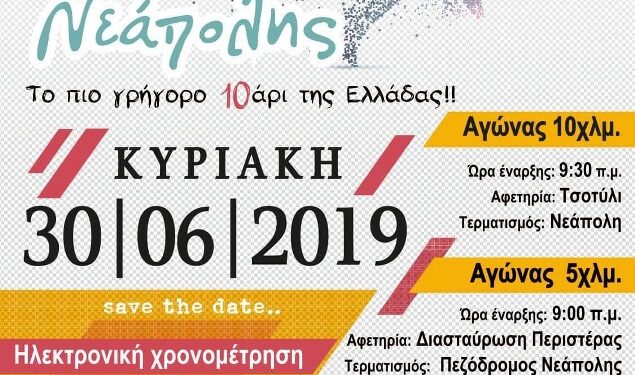 Ο Δήμος Βοΐου και ο Ορειβατικός σύλλογος Βοΐου «Προφήτης Ηλίας» σε συνεργασία με τους συλλόγους της Νεάπολης διοργανώνουν τον 5ο αγώνα Νεάπολης Κοζάνης 10100 μ την Κυριακή 30 Ιουνίου 2019. Παράλληλα θα διεξαχθεί αγώνας δρόμου 5 χλμ και παιδικός αγώνας 1 χλμ.