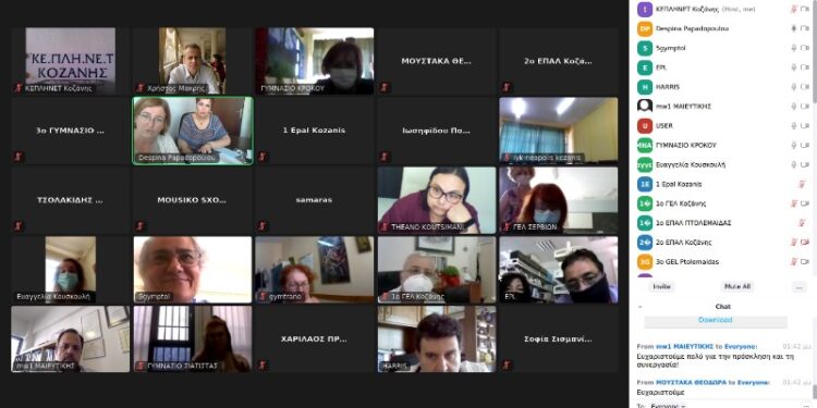 Την Πέμπτη 17/9/2020 στις 12:30 -14.00 μ.μ. η Δ.Δ.Ε. Κοζάνης και ο Ιατρικός Σύλλογος Κοζάνης συνδιοργάνωσαν ενημερωτική τηλεδιάσκεψη για ζητήματα που αφορούν την πανδημία του κορωνοϊού και τη χρήση της μάσκας στα σχολεία. Την τηλεδιάσκεψη παρακολούθησαν οι Διευθύντριες/Διευθυντές και οι Υπεύθυνοι για τη διαχείριση covid 19 των σχολικών μονάδων αρμοδιότητας ΔΔΕ Κοζάνης.