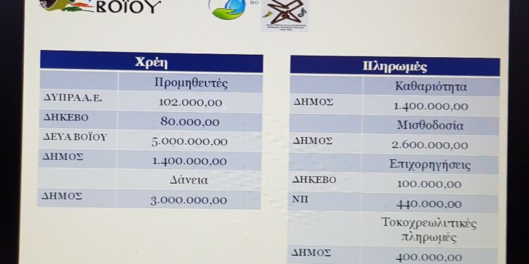 Σε 9.000.000 ανέρχονται τα συνολικά χρέη του Δήμου Βοΐου και των δομών του, (ΔΕΥΑΒ, ΔΥΠΡΑ, κλπ).