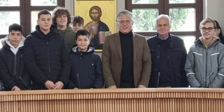 Μία ευχάριστη νότα ήταν η επίσκεψη στο Δημαρχείο μαθητών του γυμνασίου Νεάπολης με την συνοδεία του γυμνασιάρχη κ. Χρήστου Μάκρη και της καθηγήτριας Βιολέτας Παπαστεφάνου.