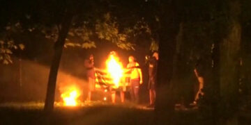 Οι δράστες, που εξαπέλυαν επιθέσεις εναντίον των αστυνομικών δυνάμεων, λίγο πριν τη μία τα ξημερώματα, έκαψαν και μία ελληνική σημαία. Μάλιστα, στη φωτογραφία που μετέδωσε ο ΣΚΑΪ στο δελτίο του, οι αναρχικοί κρατούν τη σημαία επιδεικτικά, προκαλώντας τους αστυνομικούς.