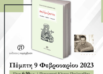 Παρουσίαση του βιβλίου «Παλίμψηστα» του Παναγιώτη Δημόπουλου πρόκειται να πραγματοποιηθεί την Πέμπτη 9 Φεβρουαρίου 2023 στο Πνευματικό Κέντρο Πτολεμαϊδας....