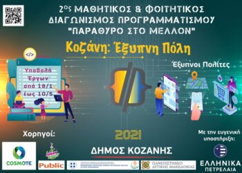 Read moreΠαράταση έως 10 Μαΐου για τον Μαθητικό & Φοιτητικό Διαγωνισμό Προγραμματισμού «Κοζάνη: Έξυπνη Πόλη - Παράθυρο στο Μέλλον» Παρατείνεται έως...