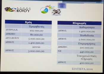Read moreΣε 9.000.000 ανέρχονται τα συνολικά χρέη του Δήμου Βοΐου και των δομών του, (ΔΕΥΑΒ, ΔΥΠΡΑ, κλπ). Μάλιστα υπάρχουν δικαστικές αποφάσεις...