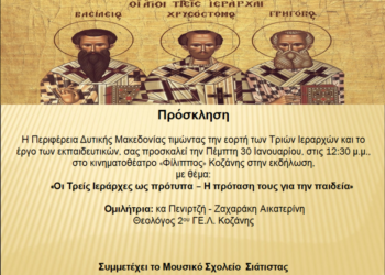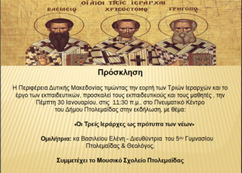 Read moreΗ Περιφέρεια Δυτικής Μακεδονίας τιμώντας την εορτή των Τριών Ιεραρχών και το έργο των εκπαιδευτικών σας προσκαλεί την Πέμπτη 30...
