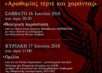 Read moreΕΚΔΗΛΩΣΕΙΣ ΠΟΝΤΙΑΚΟΥ ΔΙΗΜΕΡΟΥ 16 & 17 ΙΟΥΝΙΟΥ 2018 «Αρωθυμίας τέρτε και χαράντας» ΣΑΒΒΑΤΟ 16 Ιουνίου 2018 Θεατρική παράσταση από τον...