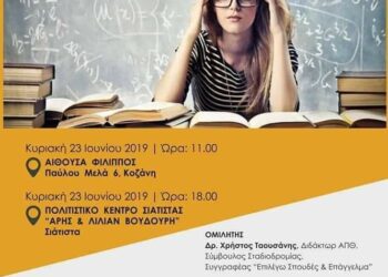 Ημερίδα επαγγελματικού προσανατολισμού θα πραγματοποιηθεί σε Σιάτιστα και Κοζάνη την Κυριακή 23 Ιουνίου στις 6μμ από τα φροντιστήρια Κουκουλιάτα, Πρόοδος...