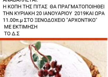 Read moreΤην καθιερωμένη κοπή της πρωτοχρονιάτικης πίτας θα πραγματοποιήσει η εθελοντική δράση πολιτών Σιάτιστας . Η εκδήλωση θα πραγματοποιηθεί την Κυριακή...