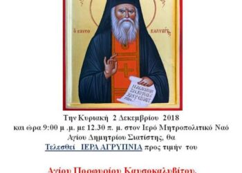 Read moreΤην Κυριακή 2 Δεκεμβρίου 2018 και ώρα 9:00 μ.μ. με 12:30 π.μ. στον Ιερό Μητροπολιτικό Ναό Αγίου Δημητρίου Σιάτιστας θα...