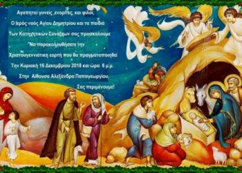 ΣΙΑΤΙΣΤΑ Χριστουγεννιάτικη Εορτή του κατηχητικού του Αγίου Δημητρίου by sierafm 12 Δεκεμβρίου 2018 0 Την Κυριακή 16 Δεκεμβρίου 2018 και ώρα 6:00, θα πραγματοποιηθεί Χριστουγεννιάτικη Γιορτή από τα παιδιά του κατηχητικού του Αγίου Δημητρίου,... Read more