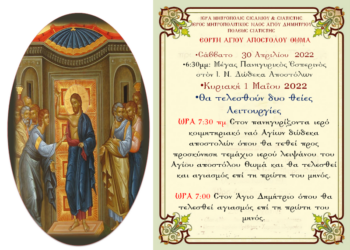 Read moreΘεία Λειτουργία για την Ανακομιδή Ιερών Λειψάνων του Αγίου Αθανασίου θα πραγματοποιηθεί τη Δευτέρα 2 Μαΐου 2022 στον Ιερό Ναό...