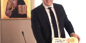 Συνεργάτες του, υπάλληλοι καθώς και αντιδήμαρχοι του ετοιμάσανε μία τούρτα και του ευχήθηκαν! Η τούρτα έγραφε “παντού να σκορπίζεις της γνώσης το φως και όλοι να λένε ξανά Δήμαρχος”