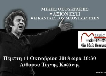 Άξιον Εστί και Καντάτα του Μαουτχάουζεν από τη Musicart- Νέο Ωδείο Κοζάνης by sierafm 10 Οκτωβρίου 2018 0 Δύο εμβληματικά έργα από τρεις εξέχουσες προσωπικότητες της τέχνης θα έχουν την ευκαιρία να απολαύσουν όσοι παρευρεθούν στην Αίθουσα Τέχνης ...