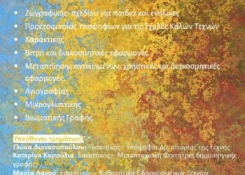 Αρχείο Ιστορίας και Τέχνης: Τμήματα εικαστικών και εφαρμοσμένων τεχνών by sierafm 9 Σεπτεμβρίου 2019 0 Το Αρχείο Ιστορίας και Τέχνης στα πλαίσια των δράσεών του, οργανώνει από αρχές Οκτώβρη στον χώρο του Μουσείου Τεχνών Κοζάνης ...