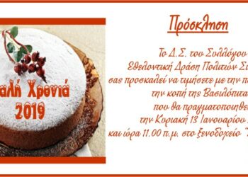 Την κοπή της πρωτοχρονιάτικης βασιλόπιτας θα πραγματοποιήσει η εθελοντική δράση πολιτών Σιάτιστας το Σάββατο 23 Φεβρουαρίου στις 7:30 στο Ξενοδοχείο ...