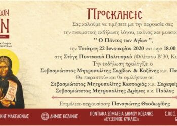 Μια πνευματική εκδήλωση, λόγου, εικόνας και μουσικής, θα λάβει χώρα την Τετάρτη 22 Ιανουαρίου 2020 και ώρα 18.00, στη Στέγη Ποντιακού Πολιτισμού (Φιλίππου ...