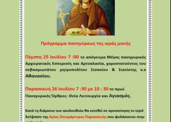 Πανήγυρις Ιεράς Μονής Αγίας Παρασκευής στα Νάματα by sierafm 21 Ιουλίου 2023 0 Πανήγυρις Ιεράς Μονής Αγίας Παρασκευής στα Νάματα