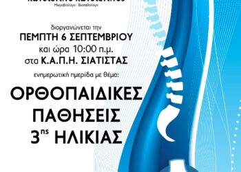 Ενημερωτική ημερίδα θα πραγματοποιηθεί στο ΚΑΠΗ Σιάτιστας για ορθοπεδικά θέματα, από τον ορθοπεδικό ιατρό Παπαδόπουλο Κωνσταντίνο και τον μικροβιολόγο Κωνσταντίνου ...