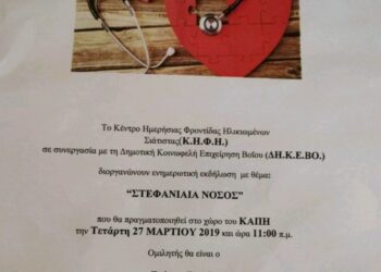 Το Κ.Η.Φ.Η Σιάτιστας σε συνερασία με την ΔΗ.Κ.Ε.ΒΟ. διοργάνωσαν την Τετάρτη 27-03-2019 ενημερωτική εκδήλωση με θέμα: ΣΤΕΦΑΝΙΑΙΑ ΝΟΣΟΣ. Ομιλητής ήταν ...