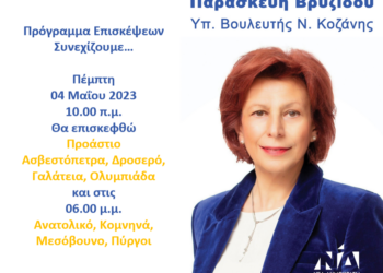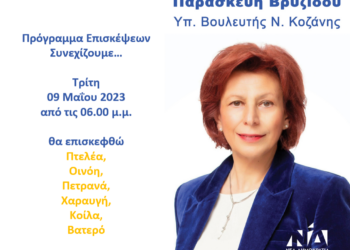 Βρυζίδου: Περιοδεία στην περιοχή «Καραγιάννια» του Δήμου Κοζάνης στις 08 Μαΐου 2023