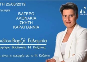 Ευλαμπία (Εύη) Πρώιου – Βαρζή – Υποψήφια Βουλευτής Ν.Δ. Ν.Κοζάνης: πρόγραμμα επισκέψεων by sierafm 24 Ιουνίου 2019 0 Το πρόγραμμα της κας Πρώιου - Βαρζή για την Τρίτη 25/6/2019.