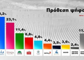 Προβάδισμα της τάξης των 24,1 μονάδων καταγράφει η Νέα Δημοκρατία έναντι του ΣΥΡΙΖΑ στην πρόθεση ψήφου, σε νέα δημοσκόπηση της GPO για τις εκλογές 2023. ...