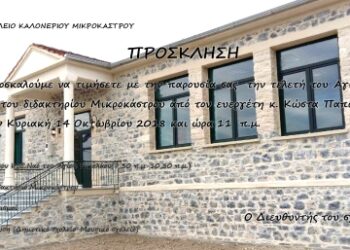 Ο αγιασμός του ανακαινισμένου σχολείου Μικροκάστρου θα πραγματοποιηθεί την Κυριακή 14 Οκτωβρίου 2018 στις 11 το πρωί. Η ανακαίνιση πραγματοποιήθηκε ...