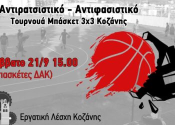 2o Αντιρατσιστικό – Αντιφασιστικό Τουρνουά Μπάσκετ 3×3 το Σάββατο 21/9 στις 3.00 μ.μ. στο Δ.Α. Κοζάνης by sierafm 18 Σεπτεμβρίου 2019 0 Κάρφωσε τον φασισμό και το σύστημα που τον γεννά και τον θρέφει!Η εργατική λέσχη Κοζάνης σας προσκαλεί σε μια αντιφασιστική ...