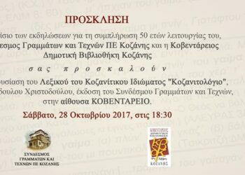Κοβεντάρειος Δημοτική Βιβλιοθήκη Κοζάνης με την ευκαιρία του εορτασμού της απελευθέρωσης της Kοζάνης (11 Οκτωβρίου), σας προσκαλεί στην παρουσίαση του ...