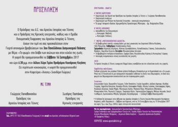 Η ετήσια γιορτή απονομών βραβεύσεων για τον 3ο Πανελλήνιο Ποιητικό Διαγωνισμό για το 2017 με θέμα «Το ψωμί» στην Κεσαρειά by sierafm 14 Σεπτεμβρίου 2017 0 Το Αρχείο Ιστορίας και Τέχνης, διοργανώνει την ετήσια γιορτή απονομών βραβεύσεων για τον 3ο Πανελλήνιο Ποιητικό Διαγωνισμό για το 2017 ...