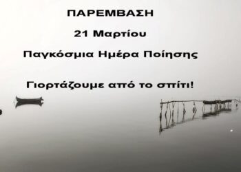 Φέτος η Παρέμβαση γιορτάζει την Παγκόσμια ημέρα ποίησης από το σπίτι! (Στείλτε τα ποιήματά σας!) by sierafm 21 Μαρτίου 2020 0 Στις 21 Μαρτίου, γιορτάζεται κάθε χρόνο σε όλο τον κόσμο η Ημέρα Ποίησης. Στην Ελλάδα η Ημέρα Ποίησης γιορτάστηκε για ...