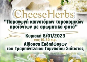 Τα τελικά αποτελέσματα της παραγωγής καινοτόμων τυροκομικών προϊόντων με αρωματικά φυτά, παρουσιάστηκαν στη Σιάτιστα την Κυριακή 8 Ιανουαρίου 2023. Η ...