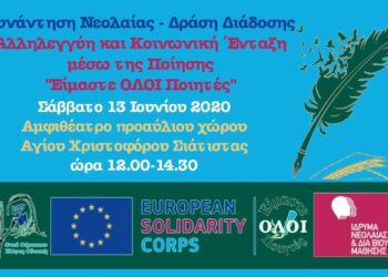 Δυο νέες δράσεις από τους Έλληνες Οδυσσείς στη Σιάτιστα by sierafm 12 Ιουνίου 2020 0 - Σάββατο 12.00-14.30 «Είμαστε ΟΛΟΙ Ποιητές» στο αμφιθεατρο προαύλιο χώρου Αγίου Χριστοφορου Σιάτιστας Είσαι 15-30 ετών; Θα βρίσκεσαι στη Σιάτιστα ...